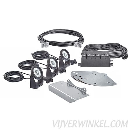 Deze compacte schijnwerper set heeft een onderwaterverbindingstechniek. De 5,8 watt maakt een lichtsterkte wat te vergelijken is met 50 watt. Geschikt voor zowel boven als onder water tot ongeveer 4 meter diepte. De levensduur is meer dan 36.000 branduren. Deze set is geschikt voor de Oase PondJet Eco.